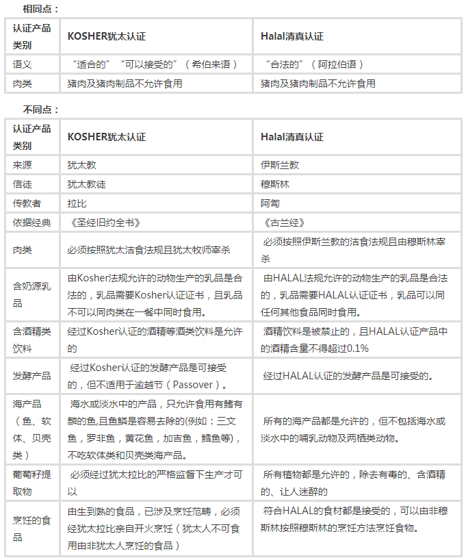 不一样,犹太认证和清真认证分别遵循于两种不同的宗教洁食法规,犹太认证产品并不代表该产品是符合清真的,同样的,获得清真认证的产品也不代表其就是符合犹太的。