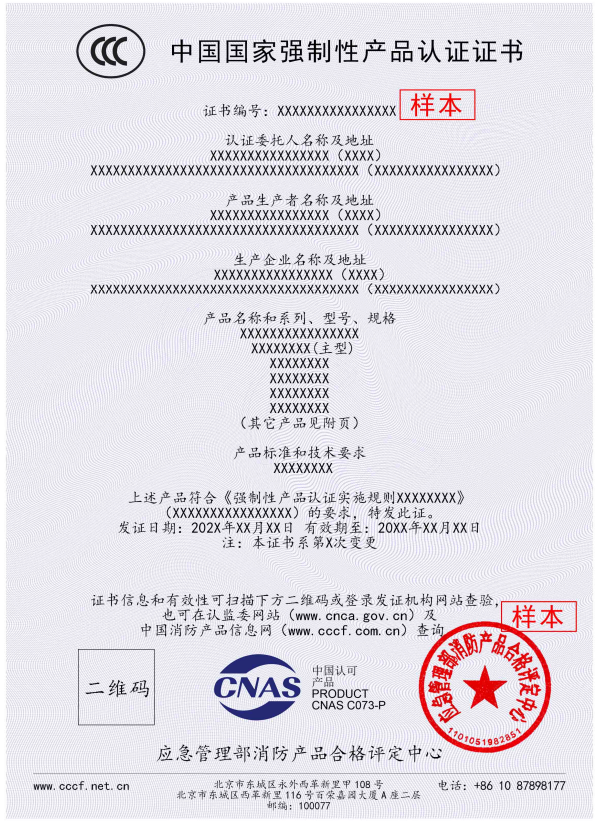 自2024年1月1日起,消防产品CCC认证全面施行电子认证证书;认证委托人有需要的,中心可依申请额外颁发纸质认证证书。已颁发的有效纸质认证证书可继续使用,通过变更、到期换证等方式自然过渡到电子认证证书。纸质认证证书与电子认证证书具有同等法律效力。