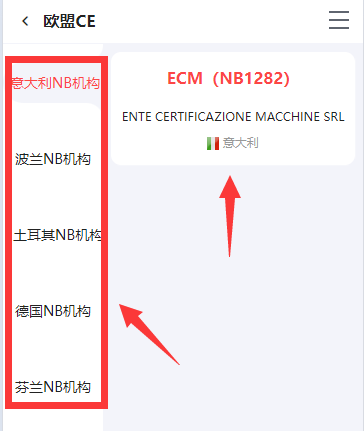 3、由于欧盟的成员国众多,所以左侧需要首先选择想要查询证书的所属国,右侧选择该国的NB机构。