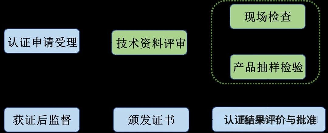 基本认证模式:初始检查+产品抽样检查+获证后监督。