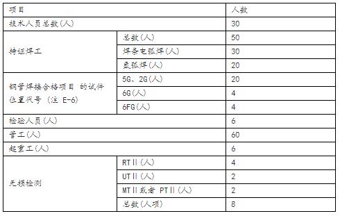c)具有机械、焊接或者金属材料等专业的技术人员不少于30人,其中具有工程师以上职称的人员不少于9人(高级工程师职称的人员不少于3人);