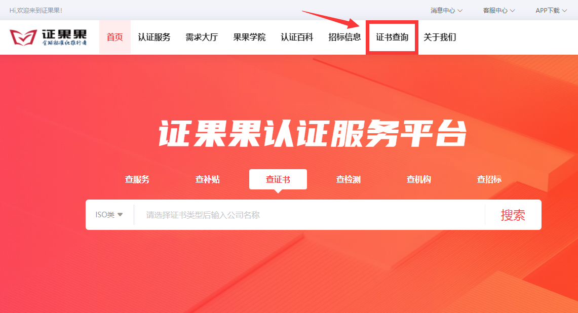1、首先打开证果果认证服务平台,选择顶部导航“证书查询”
