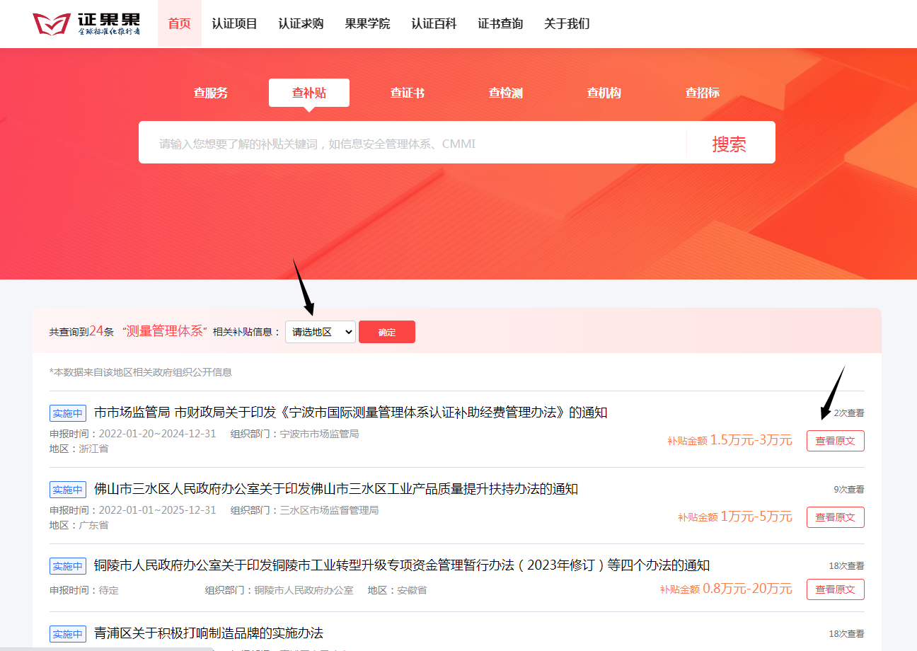 很多地区对测量管理体系认证都有补贴,不同地区政策不同,详情可在证果果-查补贴板块查询。